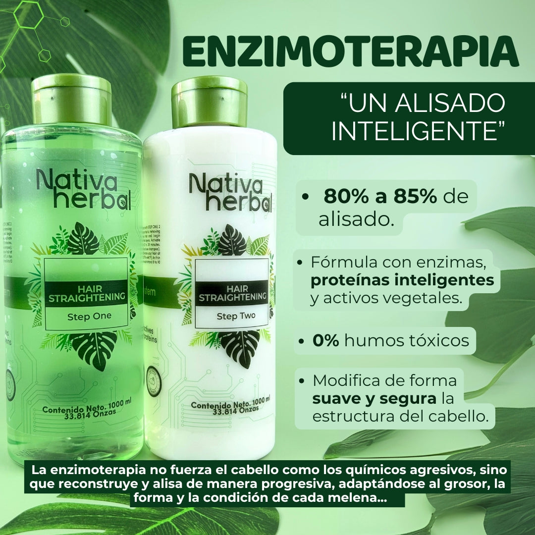 Nativa Herbal Enzimoterapia Hair Straightening Set 1000ml - Shampoo & Keratin Treatment with Rosemary Extracts for Smooth Straight Hair Care